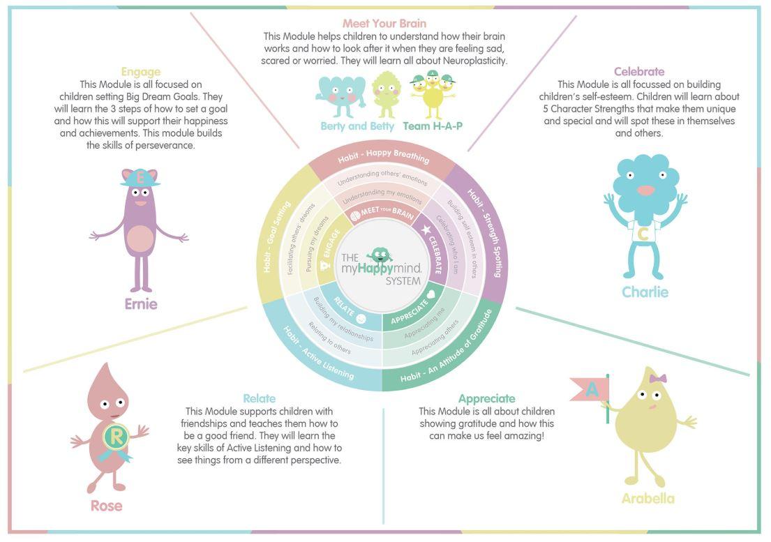 myHappymind helps children understand how their brains work and creates a culture that helps to build children's resilience, confidence, and self-esteem. myHappymind also teaches the children how to self-regulate and manage their emotions in stressful times, allowing them to be their very best selves!  See here for further information.